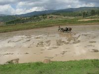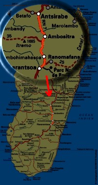 Départ d'Antsirabé vers 9h direction Fianarantsoa, capitale des Betsileos, une des nombreuse éthnies qui peuplent Madagascar. Sur la route, le décors ressemble assez à celui de la veille, même si d'autres cultures s'ajoutent aux rizières grâce à une terre plus fertile.
