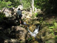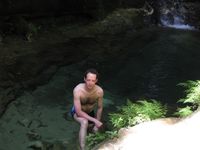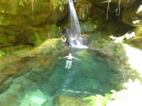 Comme je suis bon marcheur, le guide décide ensuite de changer le parcours. Plutot que redescendre la canyon, nous allons grimper au-dessus pour redescendre dans un autre et ainsi atteindre notre deuxième étape, les piscines bleue et noir. Là, nous faisons une pause baignade d'une bonne demi-heure avec, en prime, le massage naturel sous la cascade. Ah oui, joubliais de vous dire : L'eau est à une bonne vingtaine de degrés. Excellent ! Le paradis n'est pas si loin que ca.