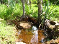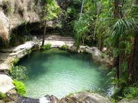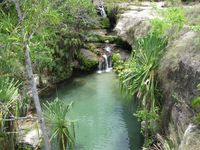 Puis nous attaquons une marche un peu plus éprouvante et en plein soleil jusqu'à la dernière étape, la piscine naturelle. Là encore, il s'agit d'un bassin alimenté par une petite rivière. Ce qui fait son charme, à cette piscine, c'est la végétation qui l'entoure. De magnifiques palmiers agrémentent le décor. Un véritable oasis au milieu du far-west.
