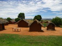 Aujourd'hui, c'est le grand départ de Ranohira vers Ifaty, dernière étape du périple vers le sud de l'île. Avant de partir de Tananarive, Gaëlle m'avait donné 2 sacs de vêtement qu'elle m'a chargé de donner où il me semblerait les plus nécessaire. Nous arrêtond donc la voiture au bord de la route à deux pas d'un petit village plutôt pauvre. Une femme se tient sur le bord de la route. A peine ai-je sorti un premier sac de la voiture, qu'une vingtaine de personnes se ruent sur moi et s'arrachent les vêtements que je leur tends. C'est là qu'on se rend compte de la misère dans laquelle se trouve le pays. Désolé, j'ai pas pris le temps de faire des photos mais voici à quoi ressemblait ce petit village. C'est villages sont innombrables à travers le pays.