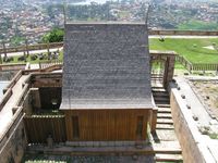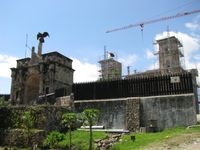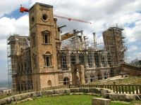 Un peu plus d'animation aujourd'hui puisque Gaëlle me propose d'aller visiter le chantier de restauration du Rova, l'ancien palais de la reine à Tananarive. Celui-ci, ainsi que tous les autres batiments royaux qui l'entouraient ont été en grande partie détruits lors d'un incendie en 1995. C'est Colas qui est chargé de la reconstruction du palais. Nous avons donc la chance de pouvoir visiter le chantier qui est habituellement interdit au public. Le chantier est impressionnant : chaque pierre a été descellée puis numérotée. Celle qui sont trop abîmées sont retaillées et remplacée. Des tailleurs de pierre venus de France travaillent actuellement sur le chantier pour recréer les colonnes telles qu'elles étaient à l'époque.