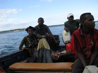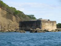 Rendez-vous à 7h à la réception de l'hôtel avec 2 autres clients : un français de la Réunion et un américain. Une voiture nous attends pour nous emmener jusqu'à Ramena, point de départ pour se rendre à la mer d'émeraude. Amusant de faire le même trajet que veille en voiture. Sur la route, on s'arrête pour admirer quelques beaux spécimens de caméléons. Bizarre, je les ai pas vu hier ! Il valait mieux avoir les yeux sur la route. A Ramena, nous sommes rejoint par un couple espagnol. Un groupe vraiment multi-national et tout le monde s'entend très bien. Nous embarquons à bord d'un bateau de construction locale. Nous commencons par longer la côte pour passer devant l'ancien quartier militaire Français et sa batterie de canons toujours pointés vers la grande passe que nous traversons, pour rejoindre la petite passe, avant que cette dernière ne soit à sec, une fois que la marée sera descendue.